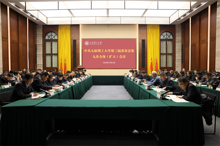 12月15日,中共太原理工大学第三届委员会第九次全体(扩大)会议在明向校区行政楼鹏飞会堂召开。会议由校党委常委会主持。校党委书记沈兴全代表校党委常委会作2025年工作报告。全会审议通过了《中共太原理工大学第三届委员会第九次全体会议决议》。