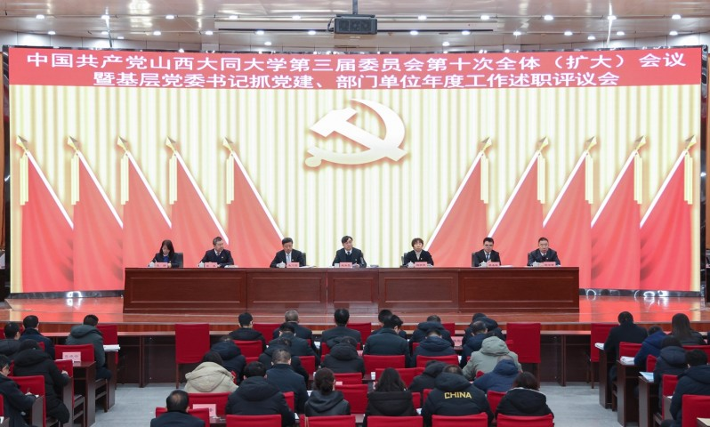 1月22日,中国共产党山西大同大学第三届委员会第十次全体(扩大)会议暨基层党委书记抓党建、部门单位年度工作述职评议会在慎思楼报告厅召开,全面总结校党委常委会2025年度工作,审议重要工作方案,听取基层党建和部分部门单位工作述职,安排部署学校下一步工作,进一步统一思想、凝聚共识,推动学校各项事业高质量发展。