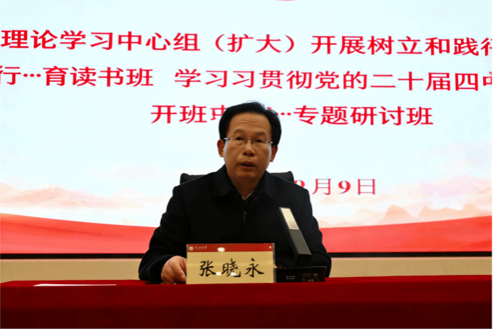 张晓永在开班动员讲话中强调,本次以校党委理论学习中心组(扩大)形式同步启动两项学习活动,旨在全面贯彻党的二十届四中全会精神,深入落实在全党开展树立和践行正确政绩观学习教育部署,解决好“政绩为谁而树、树什么样的政绩、靠什么树政绩”的立场问题,牢固树立为民造福的政绩导向,示范带动全校学习研讨。他提出三点希望:一是深刻认识开展树立和践行正确政绩观学习教育的重要意义,将其作为助力学校“双一流”创建、践行党的宗旨、推进全面从严治党的必然要求;二是准确把握学习教育的核心要义,以“立党为公、为民造福、科学决策、真抓实干”为总要求,把握学习重点、注重学用结合;三是强化统筹协同,要压实主体责任,严格遵守学习纪律,坚持分类施策、简约务实,加强宣传引导,营造比学赶超、真抓实干的良好氛围,确保学习教育取得实效,为学校各项事业高质量发展增添动力。