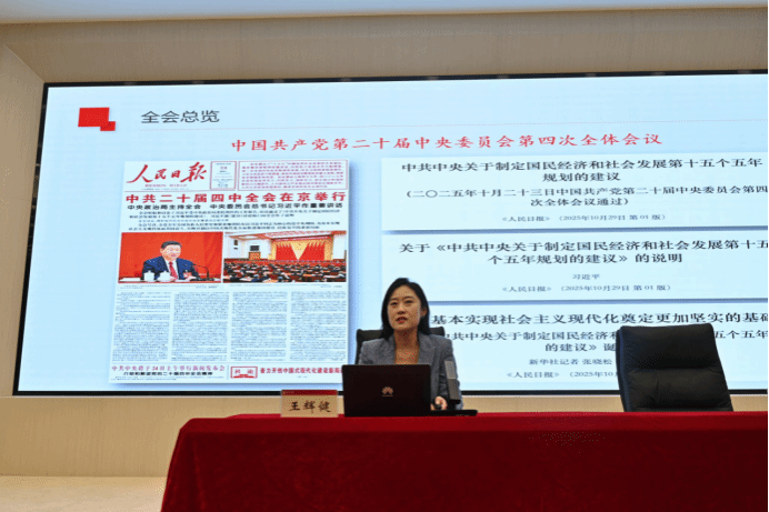 开班式上,王辉健教授紧扣党的二十届四中全会精神核心要义及“十五五”规划建议,围绕“十五五”的重大意义和历史方位、“十五五”的指导方针和主要目标、“十五五”的重大任务和根本保证等三方面,对“十五五”重大战略任务进行深入阐释,并结合高校实际精准对接教育、科技、人才“三位一体”核心职责,为学校破解发展难题、提升办学质效提供了具体可行的实践指引。报告既有理论高度又有实践深度,条理清晰、内涵丰富、解读透彻,让与会人员深受启发、倍感振奋。