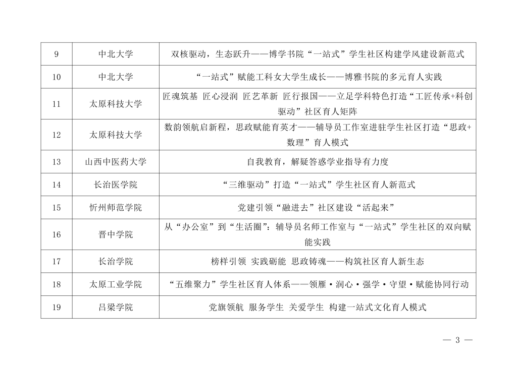 山西省教育厅关于公布2025年高校“一站式” 学生社区工作案例评选结果的通知