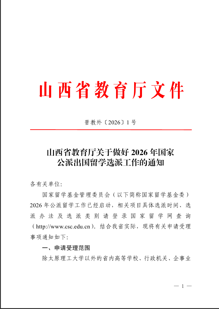 山西省教育厅关于做好2026年国家公派出国留学选派工作的通知