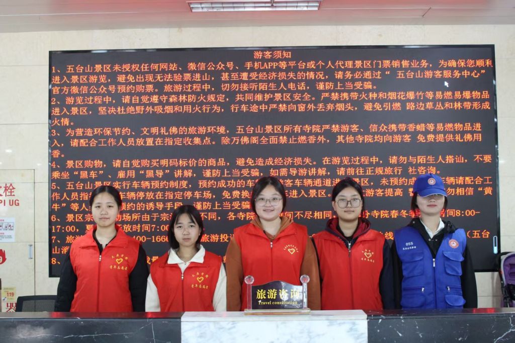 为深化实践育人,弘扬志愿精神,我校团委与五台山风景名胜区志愿服务队建立了长期的志愿服务合作机制,为广大学子搭建起一个服务社会、锻炼自我的坚实平台。国庆期间,五台山景区迎来客流高峰,八方游客登山赏景。身穿红马甲的太院学子穿梭在熙攘的人流中,用热情和专业的服务为金色秋景增添了一抹温暖的亮色,成为景区里一道独特的风景线。