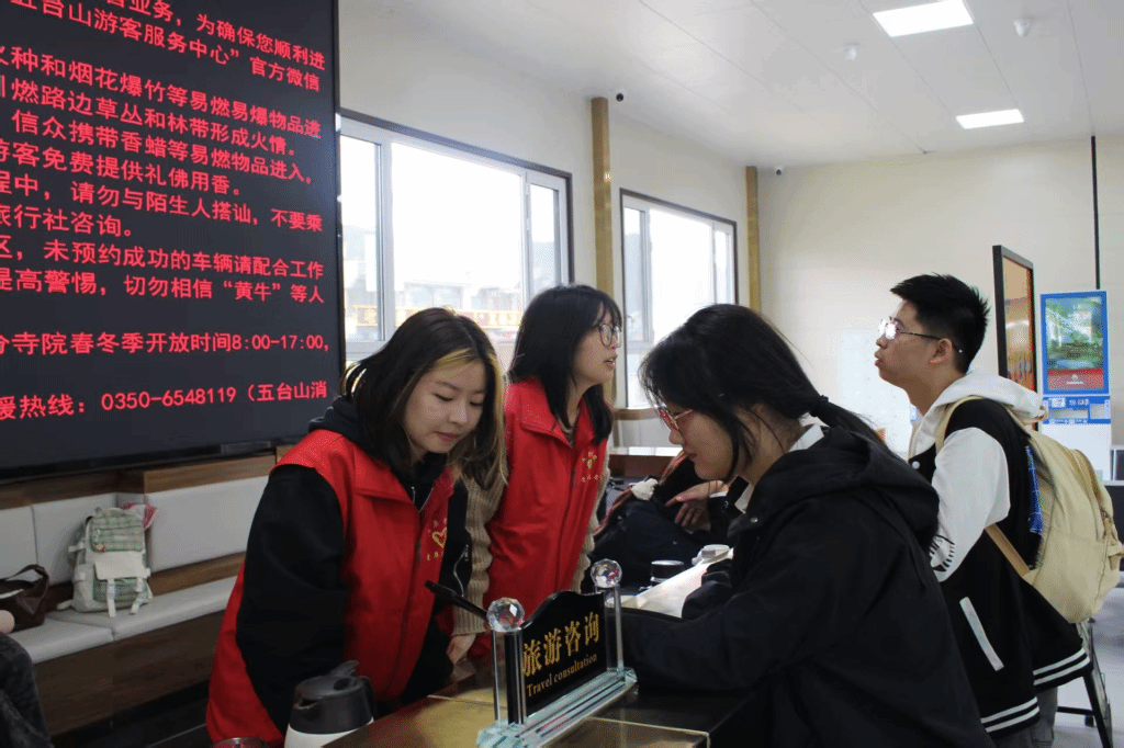 在旅游服务保障工作中,志愿者们以贴心周到的服务,成为温暖游客心灵的重要力量,宛如游客心中一剂“暖心剂”。在免费热水供应点,他们将一杯杯热水递到游客手中,用实际行动诠释着志愿服务精神,展现出良好的精神风貌。五台山景区志愿服务连“点”成“面”全域铺开,从清晨到日暮,志愿者们用耐心解答疑问,用行动解决难题,用真情传递着山间温情,助力景区营造和谐友好的旅游环境,在讲好五台山故事的实践中展现新时代青年的责任与担当。
