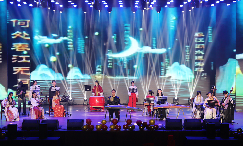 歌曲《向光而行》:第二临床学院学子用清澈嗓音唱响“追光”的信念,旋律中融入“守正创新”的精神,传递中医学子逐梦岐黄的坚定。舞蹈《灯火里的中国》:健美操队以柔美舞姿勾勒祖国山河的灯火璀璨,将中医药文化“阴阳平衡”的理念融入肢体语言,展现家国情怀与文化自信。民乐合奏《春江花月夜》:第一临床学院学子以古筝、笛箫演绎江南春夜,悠扬旋律中融入“天人合一”的中医哲学,带领观众感受传统美学与自然的和谐。歌曲《上春山》:第一临床学院与中药与食品工程学院联袂献唱,将草药生长的韵律融入歌声,唱出中医药人“踏春而行、采药为用”的浪漫情怀。