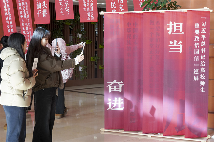 为深入学习贯彻习近平新时代中国特色社会主义思想,深刻领会习近平总书记对高校师生的殷切嘱托,引导广大师生将个人成长融入强国建设、民族复兴的伟大征程,深化“铸魂·领航”思政品牌建设,12月17日起,我校在明向校区图书馆大厅党建专区举办“习近平总书记给高校师生重要致信回信巡展”。本次巡展由学生工作部(研究生工作部、人民武装部)、图书馆主办,艺博辅导员工作室承办,吸引了全校师生广泛参与,线上展厅将同步在校园网上线,为师生打造“线上+线下”沉浸式学习平台。