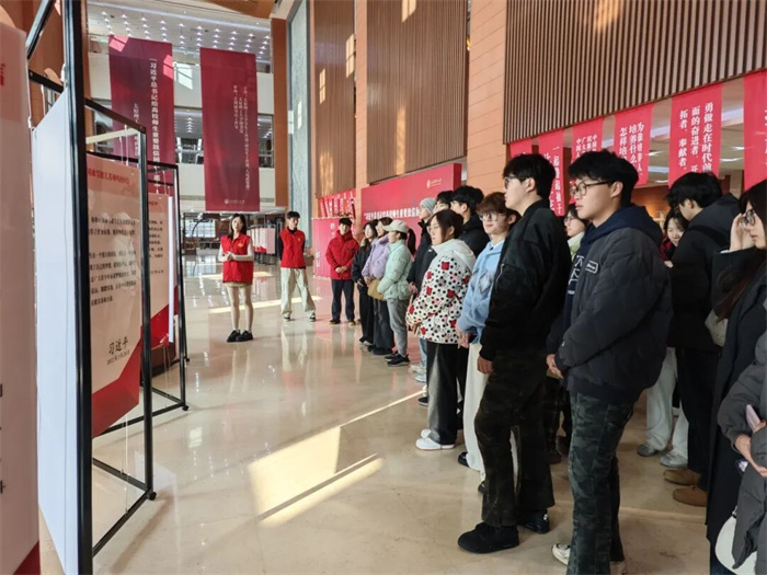 巡展期间,图书馆大厅党建专区内时常人头攒动,师生们或驻足凝视展品、轻声诵读嘱托,或与同伴交流感悟、记录学习心得,工作人员全程提供引导与讲解,现场学习氛围浓厚。各学院师生结合自身学习、工作与成长实际,纷纷分享观展感悟,让习近平总书记的殷切嘱托真正走进心中、化为行动。