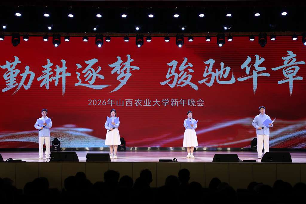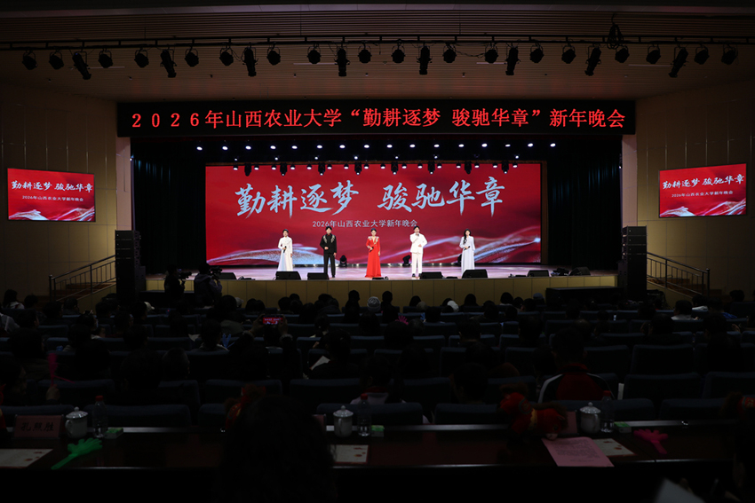 勤耕逐梦展宏图,骏驰华章颂丰年,在新的一年即将到来之际,12月30日晚7点,2026年山西农业大学“勤耕逐梦 骏驰华章”新年晚会在行远堂隆重举行。校党委副书记、校(院)长张强,校党委副书记薛建武、李卫祥,校党委常委、副校(院)长孔照胜、李捷,全校各部门各单位的领导及师生代表近千人齐聚一堂,在精彩纷呈的节目中共同迎接新年的到来,奏响学校发展的崭新乐章。