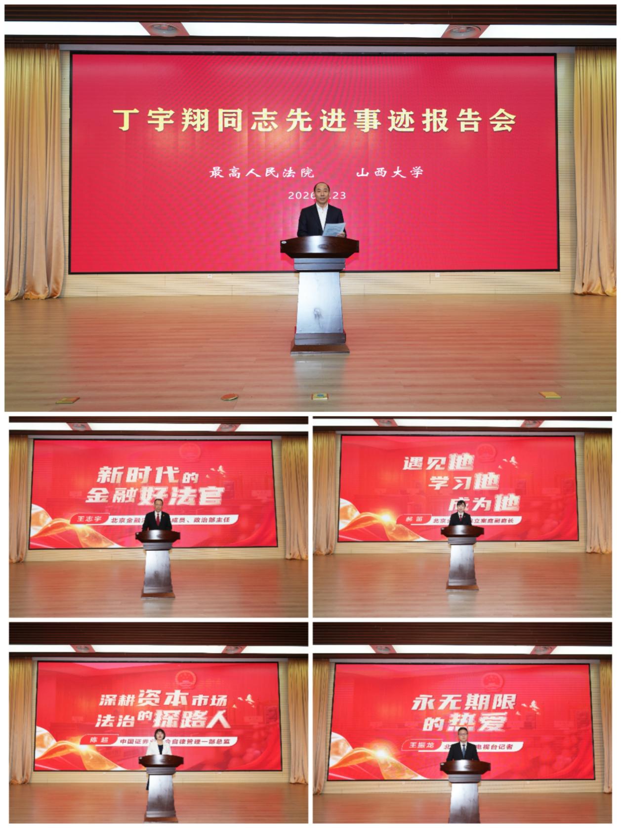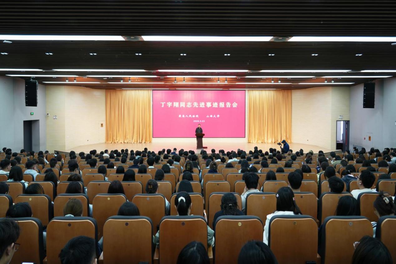 3月23日,丁宇翔同志先进事迹报告会在山西大学举行。最高人民法院政治部副主任陈本宇,最高人民法院政治部宣传教育部副部长马健伟,北京市高级人民法院党组成员、政治部主任刘丽明,山西省高级人民法院党组副书记、副院长管应时,山西省高级人民法院党组成员、政治部主任邢益民,以及丁宇翔同志先进事迹报告团成员出席报告会。报告会由山西大学党委副书记、副校长、教务长张天才主持。山西大学有关部门负责同志、各学院师生代表500余人现场聆听,共上一堂生动深刻的思政教育课。