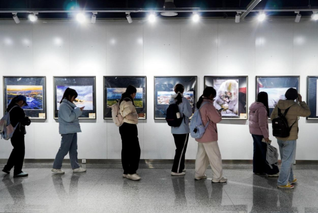 此次展出的作品内容丰富多样,以独特的艺术视角,生动记录了三晋大地的美丽与魅力,既有对社区文化活动的精彩捕捉,也有对校园生活、城市发展和自然生态的艺术呈现,充分展现了我省群众的艺术才华和审美追求。展览历时五天,吸引了众多师生前往观展。师生在光影交织的艺术长廊中驻足欣赏、交流心得。一幅幅生动影像不仅展现了摄影艺术的魅力,更成为传播社区文化、凝聚学子情感的重要载体。