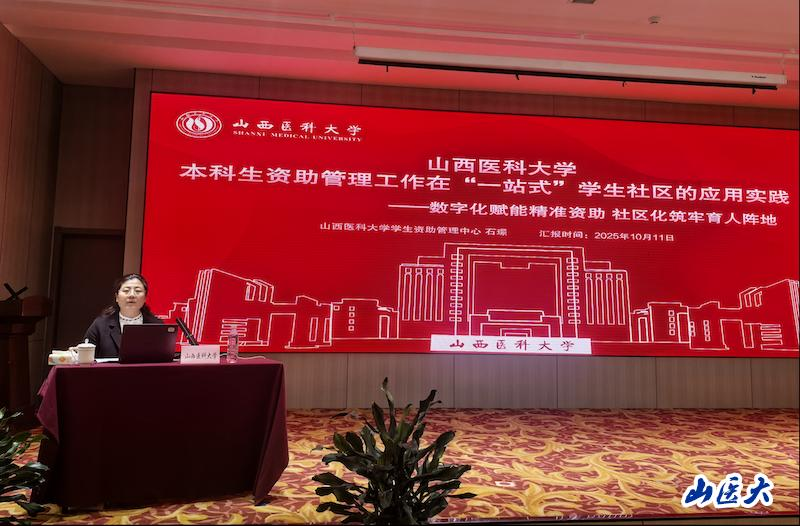 10月11日,由山西省教育资助与保障中心主办的2025年全省高等教育学生资助业务培训班在太原举办。来自全省普通高校、研究生培养单位的学生资助工作负责人及骨干参加培训。我校学生资助管理中心应邀在会上作题为《山西医科大学本科生资助管理工作在“一站式”学生社区的应用实践--数字化赋能精准资助 社区化筑牢育人阵地》的专题交流,分享我校依托“一站式”学生社区推进资助育人工作的创新实践与成效。